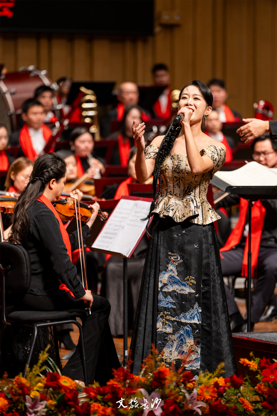 开场是交响乐《长沙序曲》,这也是这首交响乐的首演。它宛如一幅缓缓流淌的历史画卷,将长沙的千年历史底蕴、独特人文风情和现代发展风貌展现在观众眼前。