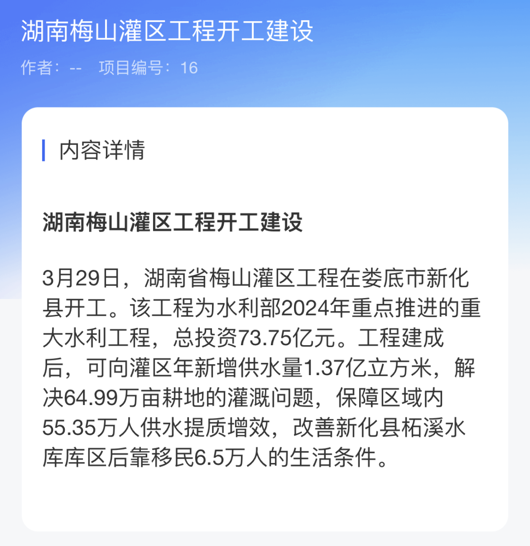 “湖南梅山灌区工程开工建设”入围2024有影响力十大水利工程,“湖南麻阳县:探索水生态产品‘变现’路径”入围2024基层治水十大经验。快来为它们打call~