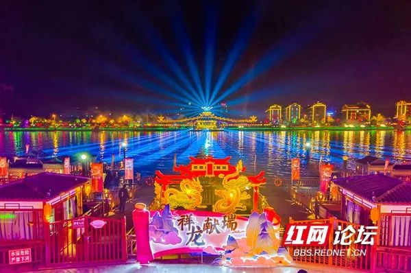 2月11日夜晚,芷江县城的舞水河两岸灯光璀璨,热闹非凡。(拍摄:田文国)