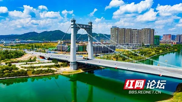 9月8日,蓝天白云下的怀化陆港大桥。(拍摄:田文国)