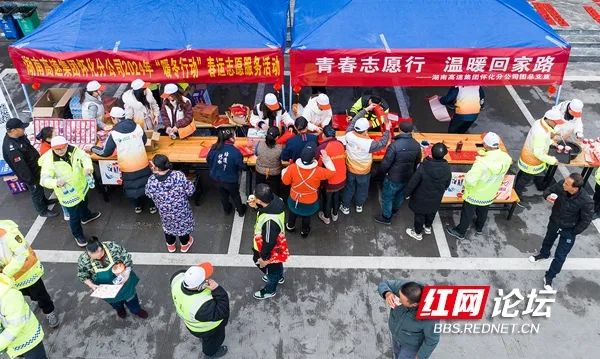 1月26日是春运首日,为打造“平安、便捷、温馨”的春运出行环境,湖南高速集团怀化分公司联合怀化志愿者协会在怀化高速各收费站、服务区搭起“暖冬行动”春运志愿服务台,为过往司乘送上暖心服务,温暖广大旅客的返乡之路。(拍摄:田文国)