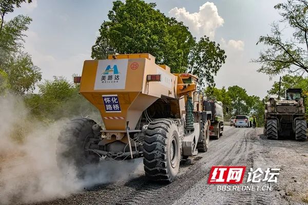 9月3日,辰溪县境内的S318省道大修工地施工现场一片热火朝天的景象。承担建设任务的怀化路桥工程技术人员冒着烈日“烤验”,抢抓工期忙施工。(拍摄:田文国)