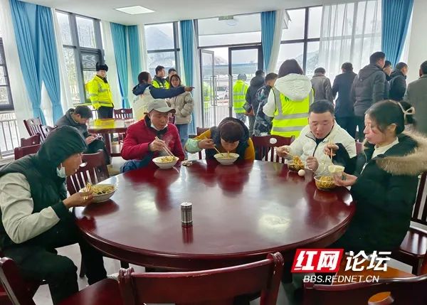 2月4日,怀化高速西晃山收费站为滞留旅客准备了面条等食品。(拍摄:田文国)