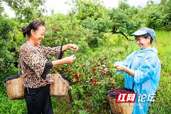 6月13日,中方县花桥镇龙场村杨梅基地,村民在采收杨梅。(拍摄:田文国)