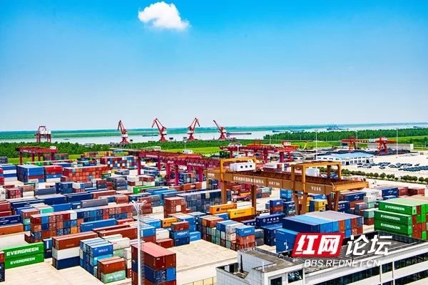 5月25日,整齐、规范、美观的岳阳城陵矶国际集装箱码头。(拍摄:田文国)