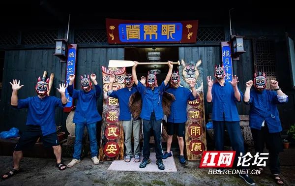 6月9日,麻阳锦和镇准备参加龙舟赛的傩面桨手。(拍摄:田文国)