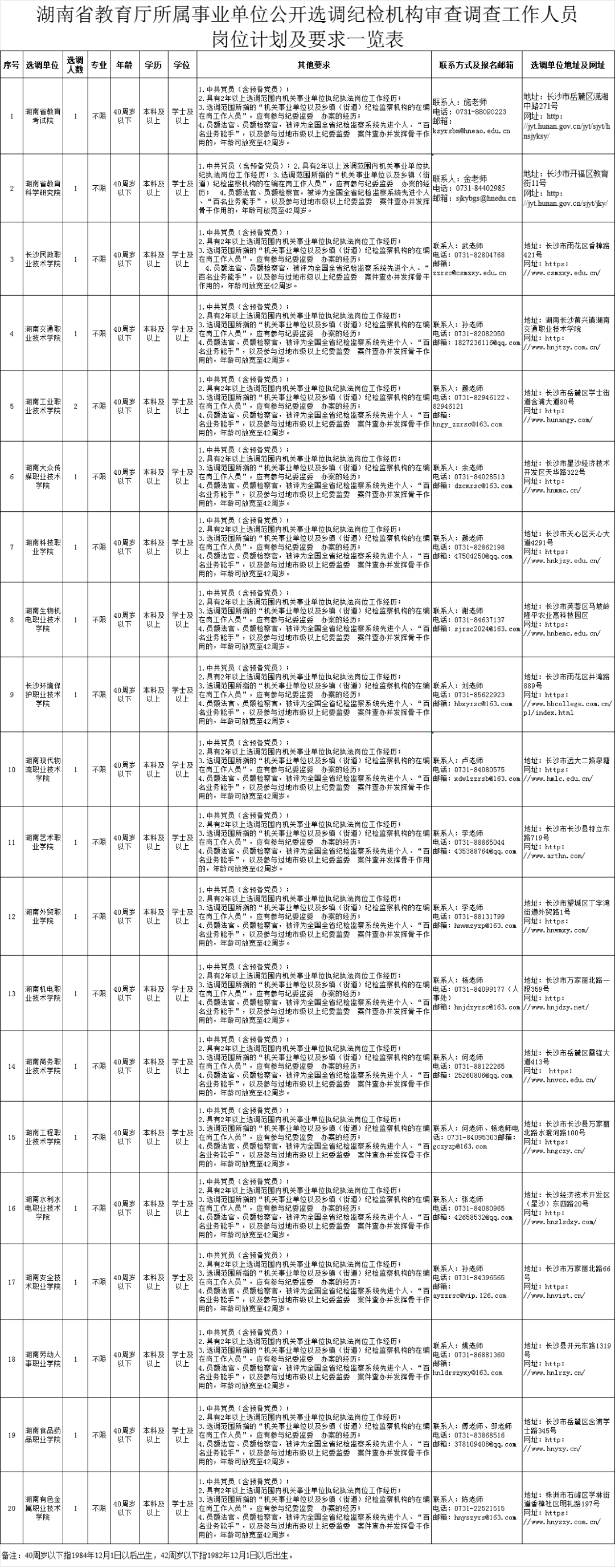 附件:1.湖南省教育厅所属事业单位公开选调纪检机构审查调查工作人员岗位计划及要求一览表