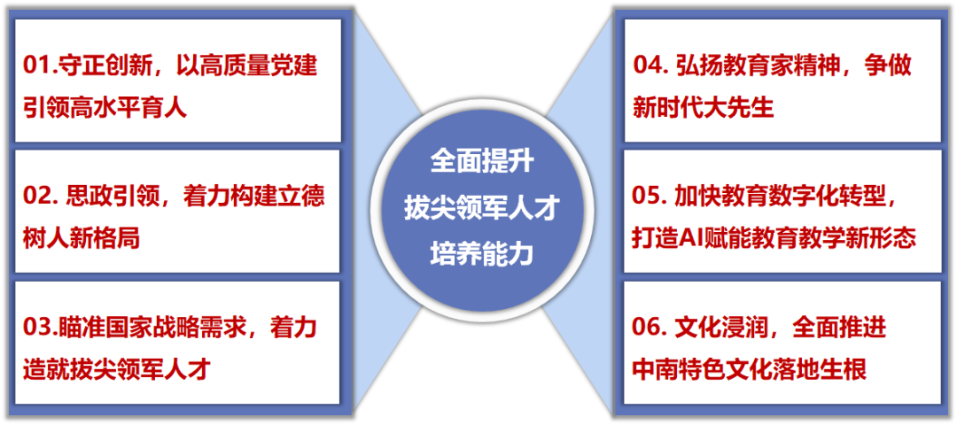 强化科技教育和人文教育协同,营造数智融合赋能、多元个性发展的教育教学新生态,探索拔尖领军人才培养新路径新模式,培养和造就具有鲜明的“家国情怀底色、实干担当精神、创新创业能力、全球视野格局”的德智体美劳全面发展的社会主义建设者和接班人。