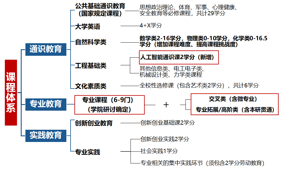 课程体系重构更加凸显学生个性化发展和专业交叉融合,具体体现如下: