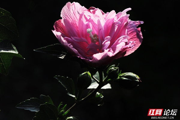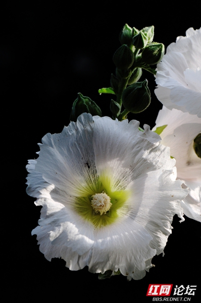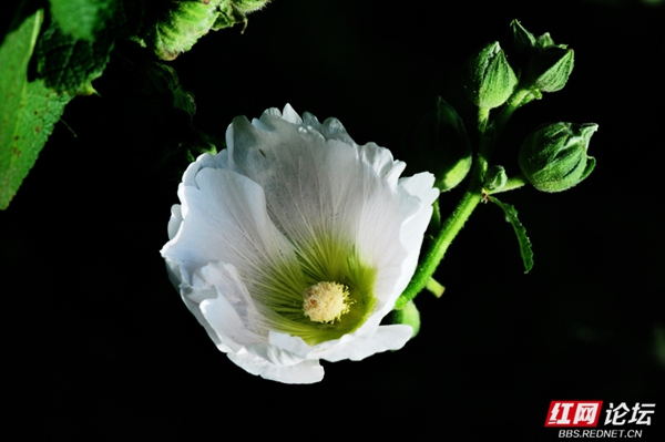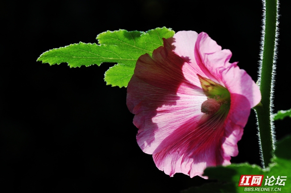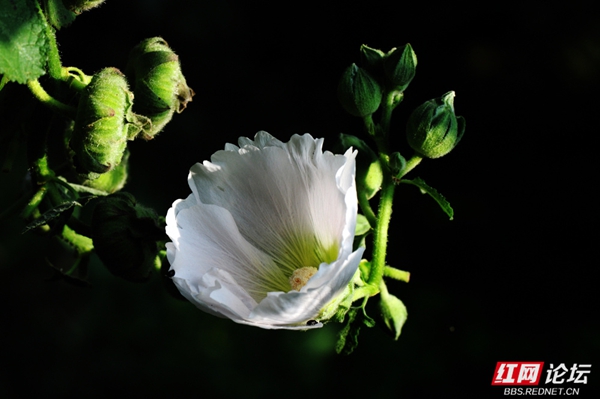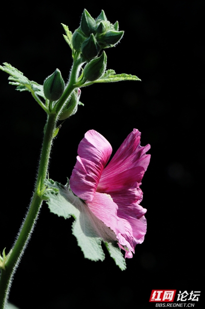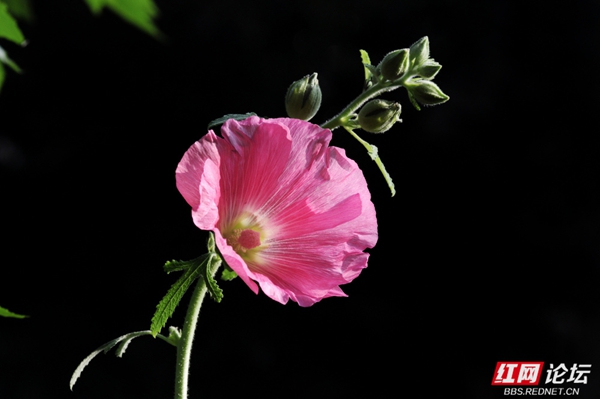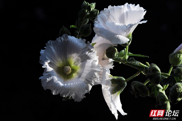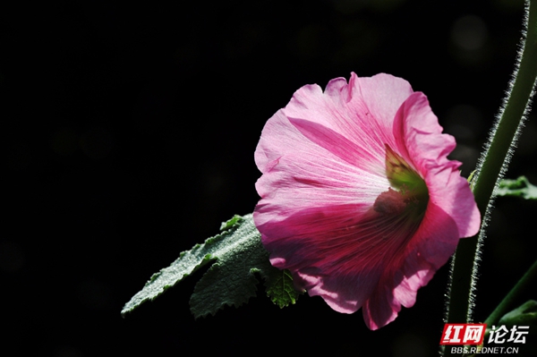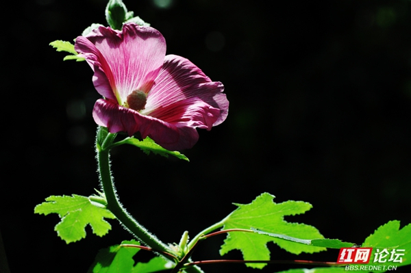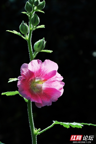 明暗交织的舞台,蜀葵无声绽放。(图源:红网论坛@王1961)