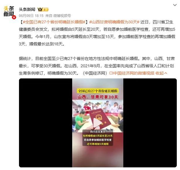 最近网上刷屏,全国好多地方的婚假都延长了——山西30天、四川25天、山东18天……好家伙,结婚直接送“蜜月套餐”!