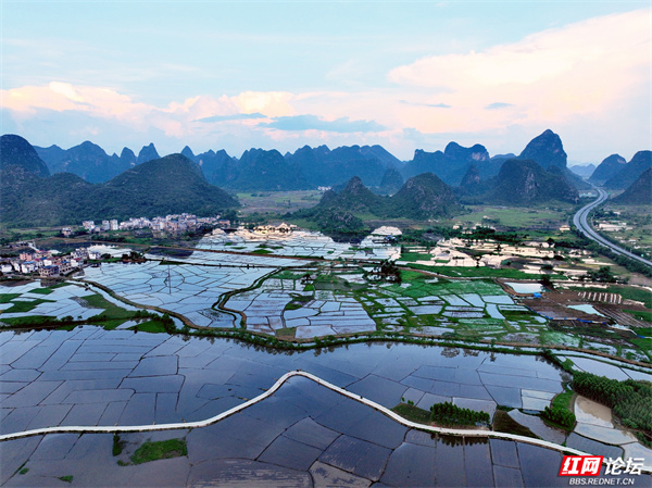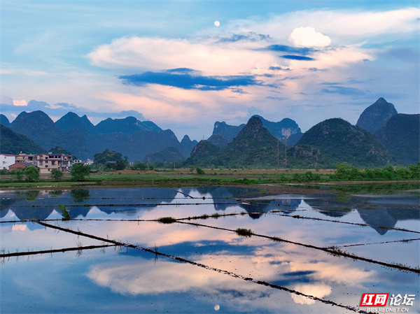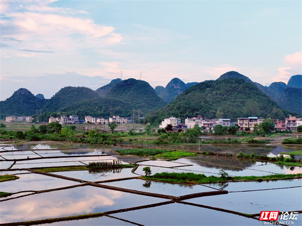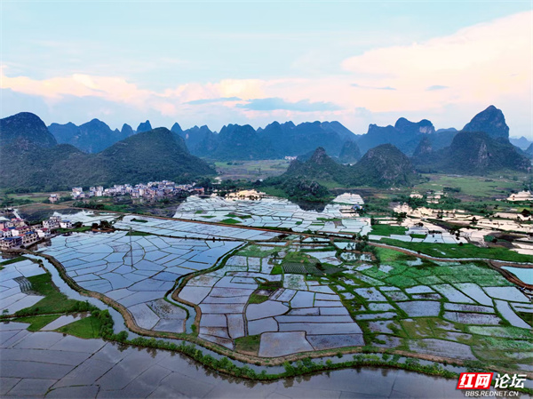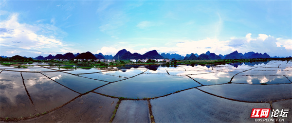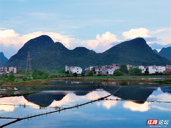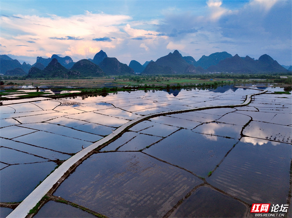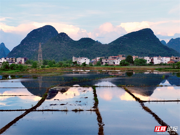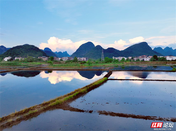 站在桂林市临桂区塘北村的田埂上,像被大自然拥进怀里。水田镜面铺开,天光云影、青山村舍,直直映进眼里心里。风掠过耳畔,带着泥土与稻香,喧嚣被隔绝在外,每口呼吸都浸着宁静,仿佛成了这幅山水长卷里,最鲜活的一笔 。(摄影:杨勇)