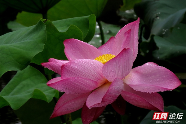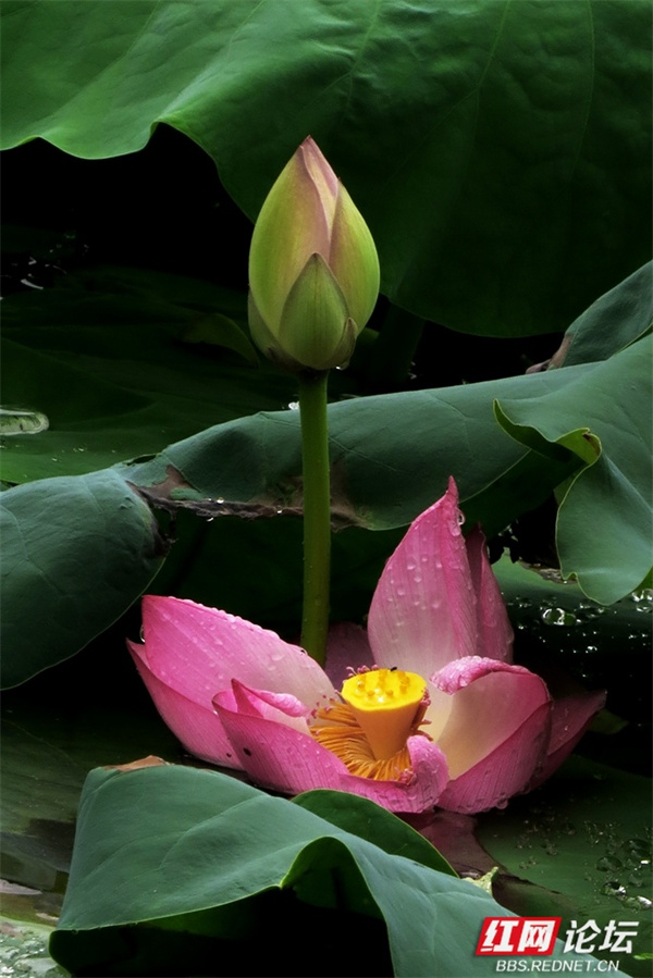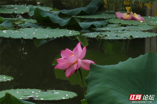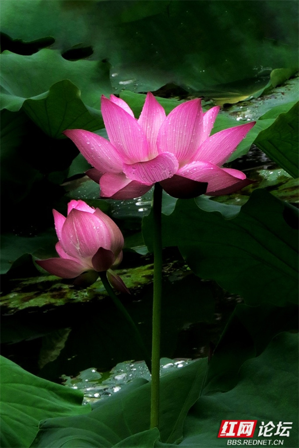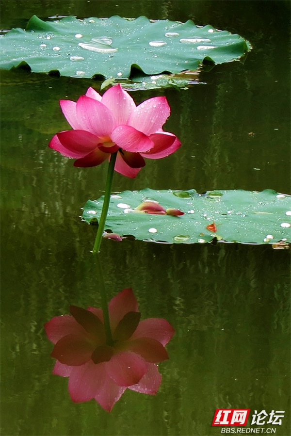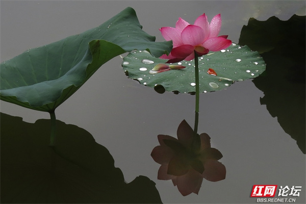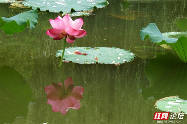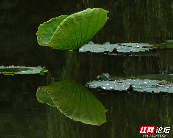 忽而一阵风过,荷叶上的水珠簌簌坠入池中,荡开圈圈银边涟漪。涟漪与荷花倒影交叠,粉荷、绿盖、银波相映成趣,将这方荷塘酿成了一首清新雅致的抒情诗,在夏夜里静静流淌。(图文/红网论坛@万里云1688)