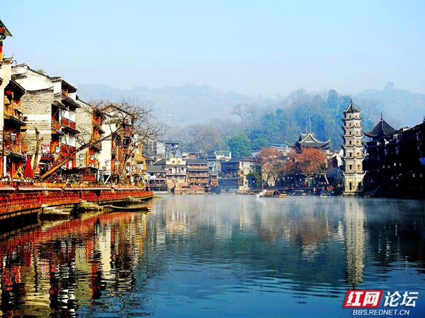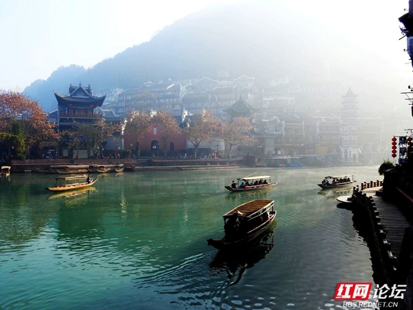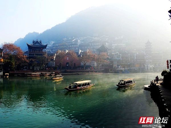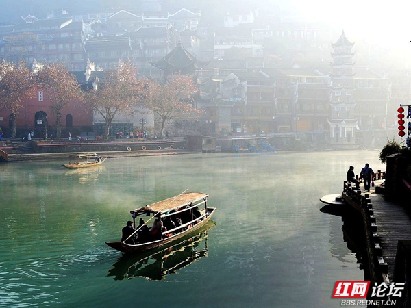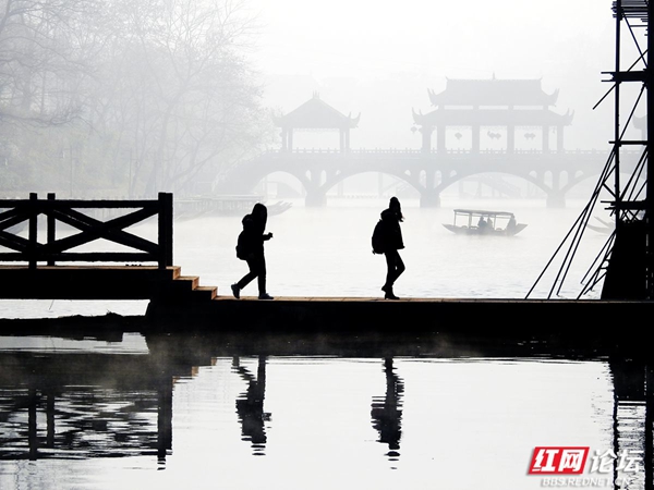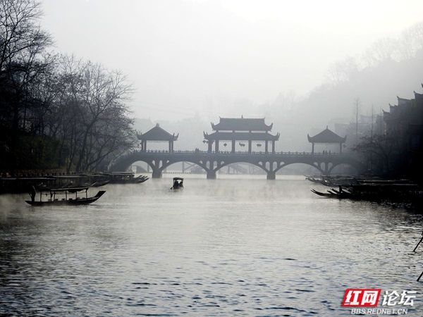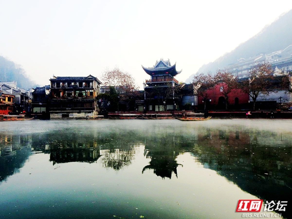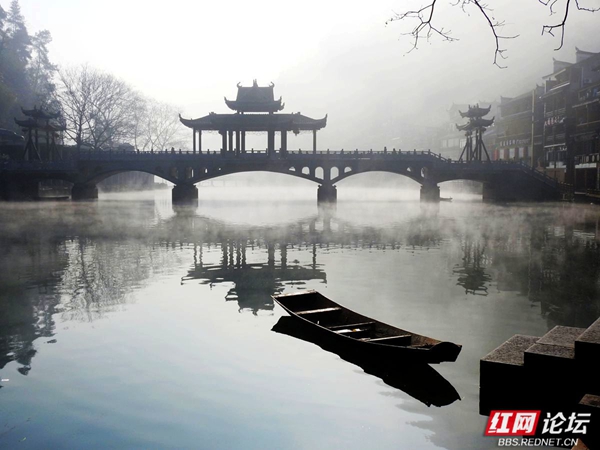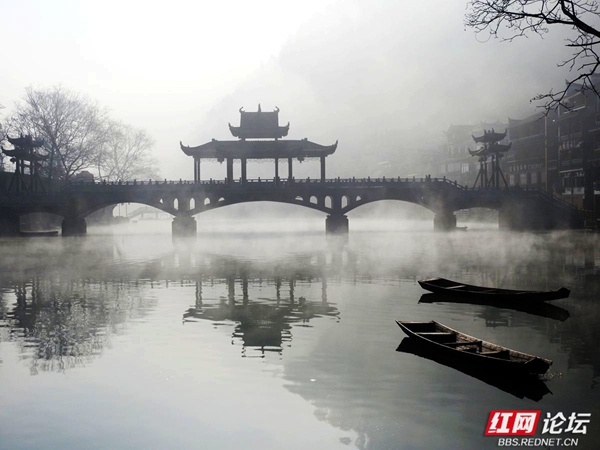 凤凰沱江的早晨,像一幅淡墨晕染的山水长卷。薄雾如轻柔的纱幔,缓缓披在江面与两岸。古老的吊脚楼在朦胧中若隐若现,飞檐翘角似要探入云端。沱江的水泛着微光,几叶小舟悠然划过,船头渔人身影模糊,仿佛从旧时光里驶出。晨雾中,偶有行人的剪影,轻轻踏上临水的栈道,脚步声都似怕惊扰这静谧。远处山峦在薄雾后沉睡,与江边的建筑、江上的雾气,共同织就凤凰沱江独有的清晨,藏着岁月的温婉与古城的幽秘 。(图文/红网论坛@足迹刘叔)