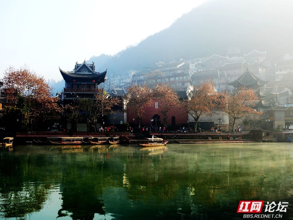吊楼轻影、渔舟淡痕——沱江晨曲。(图源:红网论坛@足迹刘叔)