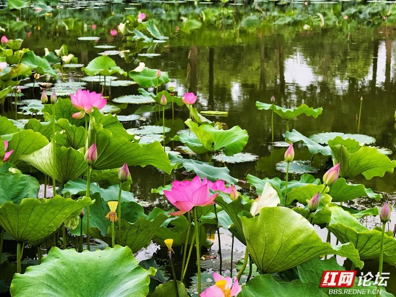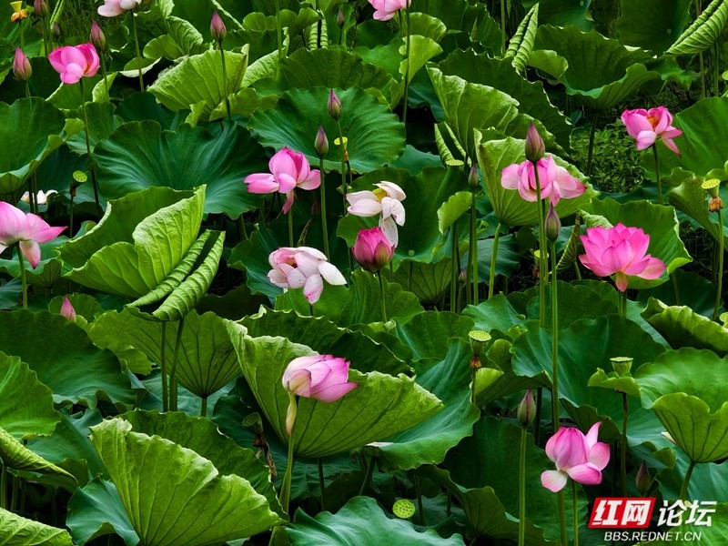 一朵朵红艳荷花肆意开放,有的完全舒展,花瓣薄如蝉翼又泛着莹润光泽;有的半开半掩,藏着几分娇俏。阳光倾泻而下,温柔地亲吻花瓣,让荷花明艳得惊心动魄,微风轻拂,花叶轻晃,似在天地间演绎一场灵动的绮丽舞蹈,把夏日荷塘的生机与浪漫,都渲染得淋漓尽致,叫人挪不开眼、收不住心。