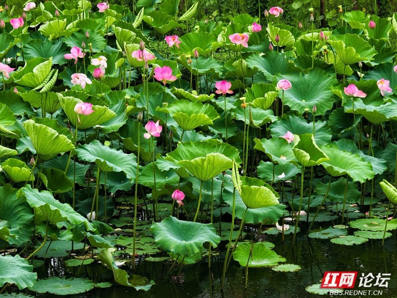 “接天莲叶无穷碧,映日荷花别样红”。踏入荷塘景致,满池荷叶像是被大自然赋予了无尽生长力,层层叠叠、密密麻麻地铺展开来,如汹涌绿浪朝着天际奔腾蔓延,那望不到头的碧绿,似要把蓝天都染成同色 。