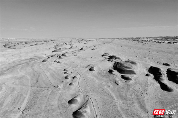 这片地貌,是大自然鬼斧神工的实验室。干旱与风沙携手,打磨出独特的地质肌理,将粗犷与苍凉凝于每一寸土地。当无人机升空,俯瞰那如外星阵列般的土丘与凹地,更觉人类在自然伟力前的渺小。冷湖俄博梁,以极致的荒芜与奇幻,成为地球上最像火星的地方。它是对宇宙秘境的预演,引无数人奔赴:触摸“火星” 的温度,聆听沙砾与风的星际私语……(图文/邓国强)