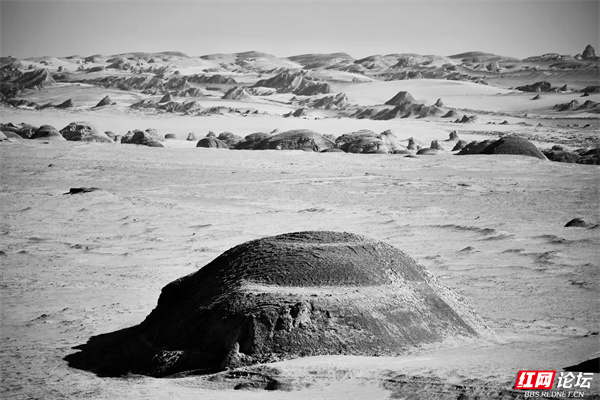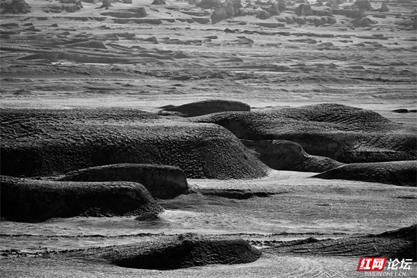 踏入青海省海西蒙古族藏族自治州茫崖俄博梁地区,仿若置身火星。黑与白交织的天地间,风雕琢出的雅丹群是大地的杰作——或如尖塔直刺苍穹,或似巨兽蛰伏沙原,每一处褶皱、每一道棱线,都藏着岁月蚀刻的密码。荒芜沙海延展,孤岩错落,在烈日下投下诡谲阴影;冷寂氛围里,似有火星的神秘气息悄然流淌。