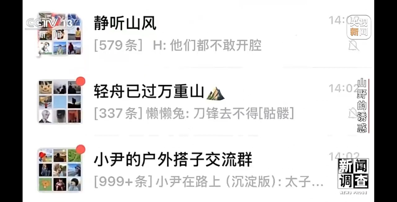 记者搜索到了一些成渝地区户外徒步微信群,群内每隔几分钟就会有新的徒步活动消息,它们大多以扫描二维码进群的方式发出邀请。其中,不乏“赵九铁”的邀约。而群主,往往就是此趟行程的领队。然而在2024年周先生遭遇的9人迷路事件中,正是因为领队的错误指引才导致了意外发生。
