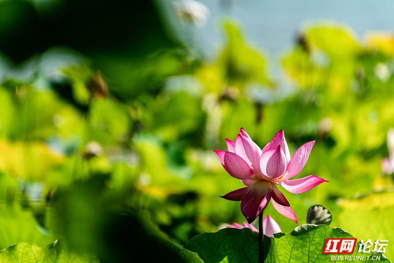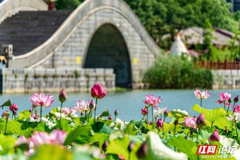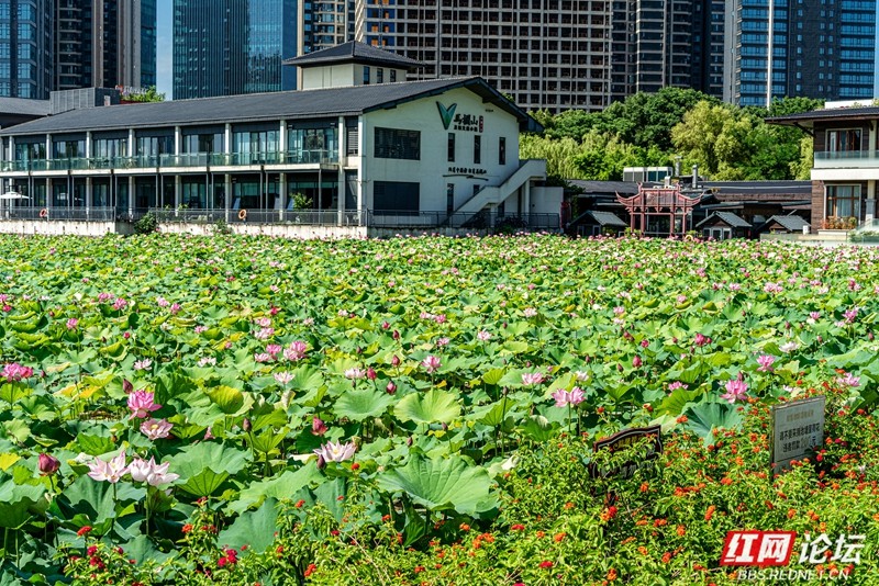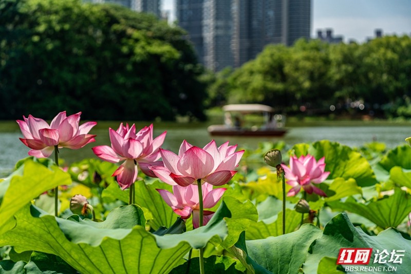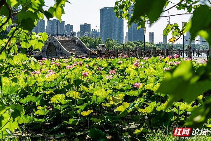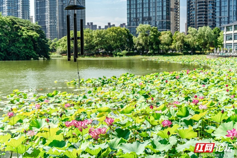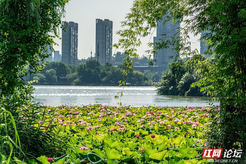 远处,城市高楼林立,车水马龙,而眼前的这片荷塘却仿佛远离喧嚣,为都市人开辟出一方宁静的心灵栖息地。漫步湖畔,或是轻舟穿行于荷塘之间,皆能让人心神宁静,流连忘返。这座城市与自然交融的美景,既是对生活美学的诠释,也是长沙绿色生态画卷中动人的一笔。(图文/红网论坛@迷底)