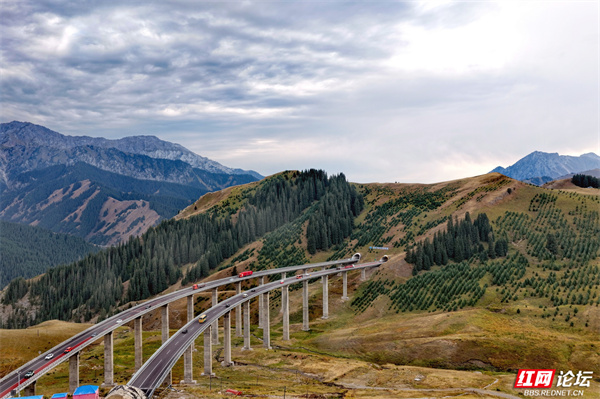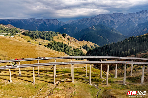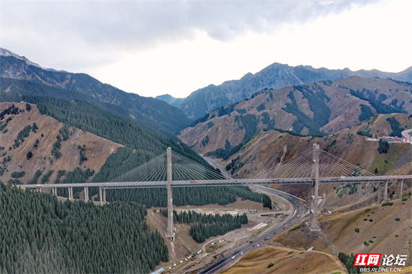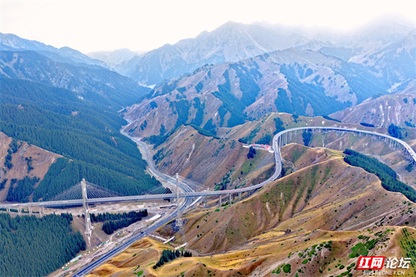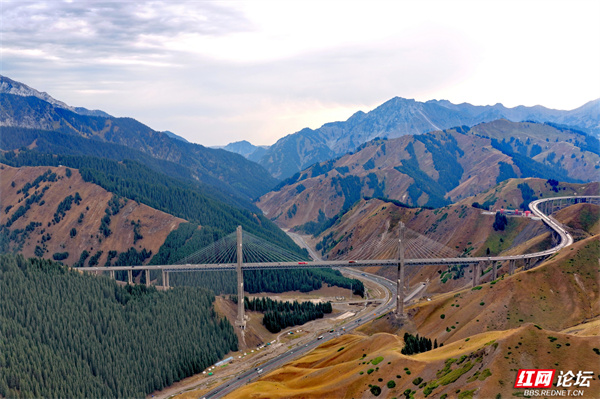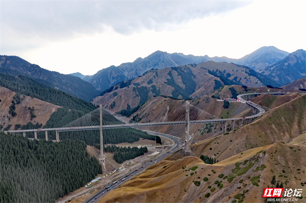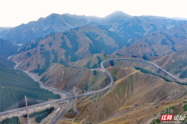 新疆果子沟大桥,如银龙盘踞于伊犁山谷间。它横跨崇山峻岭,在壮阔天地里,既见证着基建的硬核实力,又与层峦叠翠、逶迤山道相融,是伊犁风光里超震撼的存在。(图文/杨勇)
