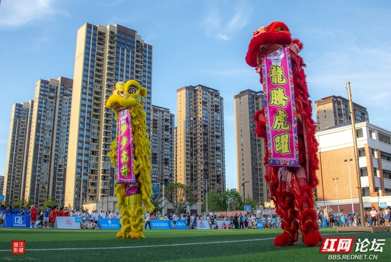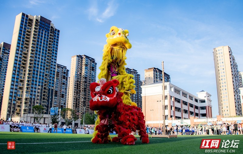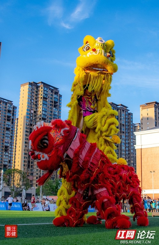 8月18日,“深柳村BA”篮球赛在安乡县子龙小学火热开幕!开场的醒狮表演瞬间点燃全场,红黄双狮威风凛凛,在绿茵场上腾挪翻跃,刚劲有力的动作将“龙腾虎跃、步步高升”的美好寓意,全融进精彩招式里。