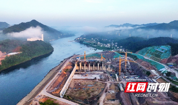 金塘冲水库工程是一个以防洪为主,结合灌溉供水、发电,兼顾航运、生态等综合效益的大型水利工程。枢纽采用“左岸鱼道+河床式厂房+泄水闸+右岸船闸”的总体布局,主要建设内容包括14孔泄水闸(最大坝高32米)、4台50兆瓦机组的电站厂房及1000吨级船闸。当前一期工程重点推进8孔泄水闸及电站厂房建设。