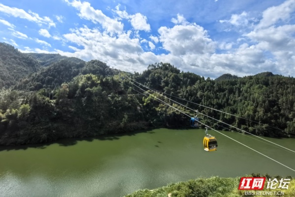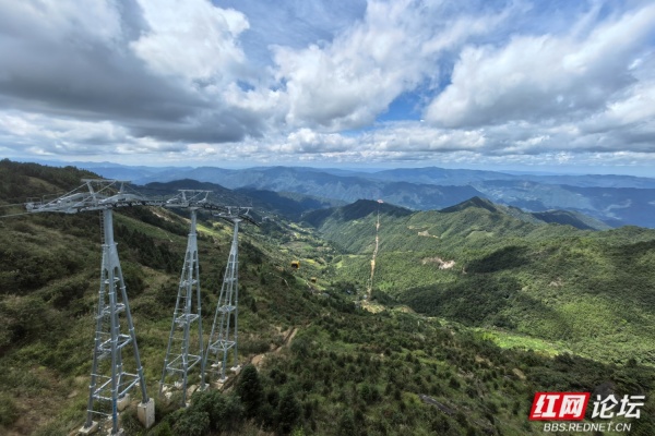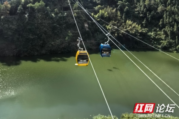 索道于9月12日开通运行,乘坐索道缓缓升空,仿佛开启了一场穿越云端的诗意之旅。这条全长7600米的客运索道从沪昆高铁溆浦南站出发,跨越1158.5米的垂直高差,23分钟直达海拔1450米的隆回虎形山大花瑶景区,创造了“全球最长高山索道”“中国最长索道”新纪录,成为怀化、邵阳两市跨区域旅游发展的新引擎。