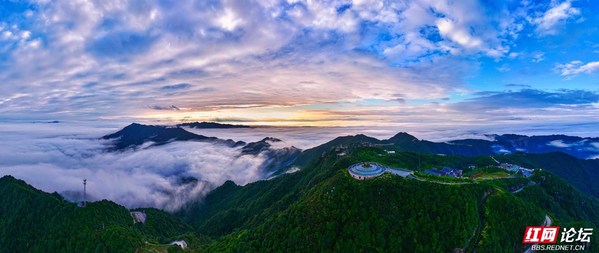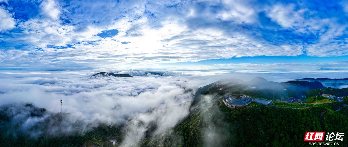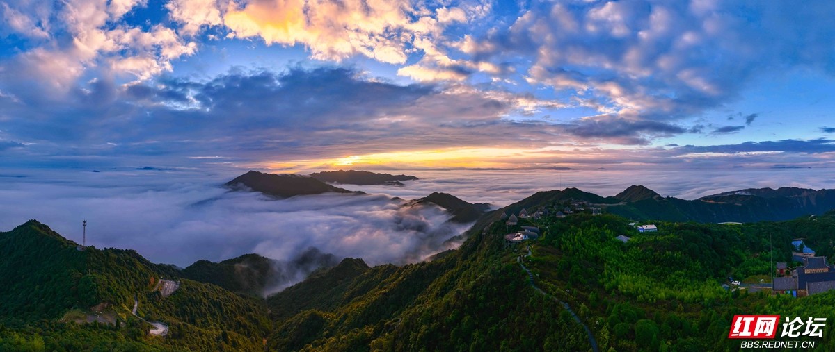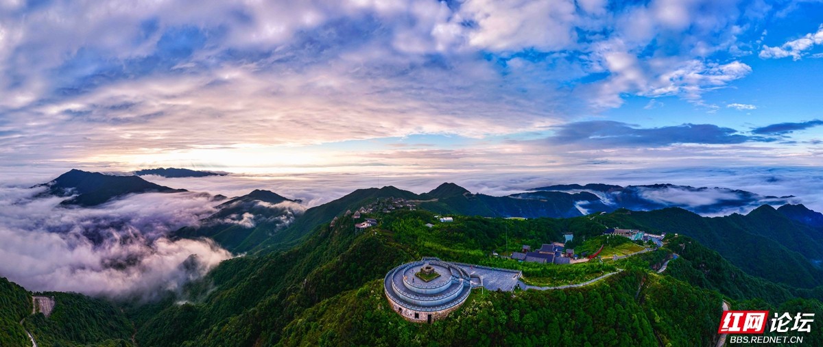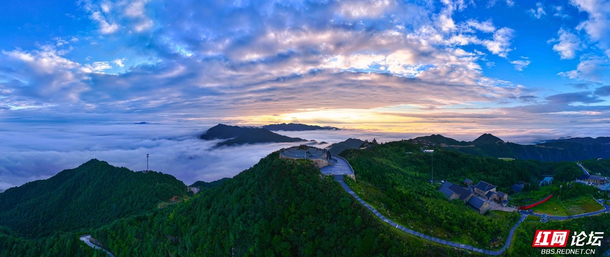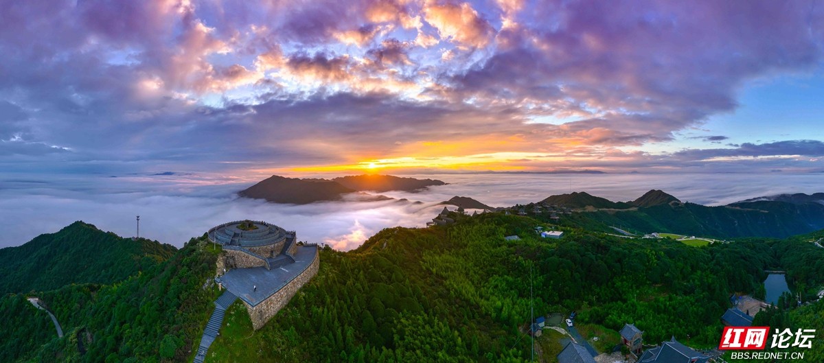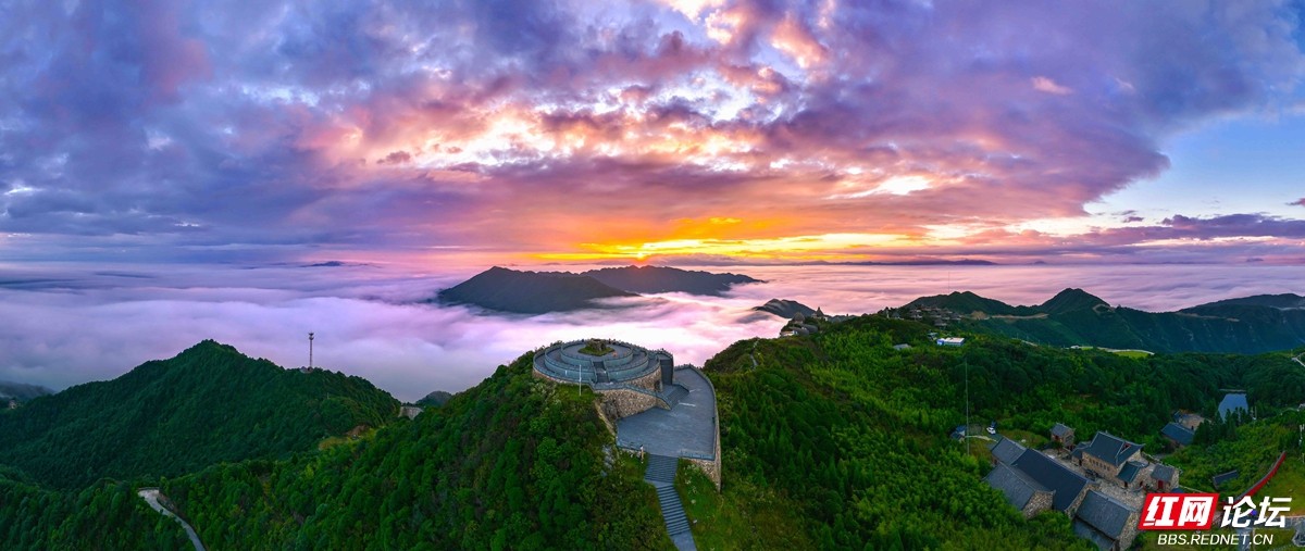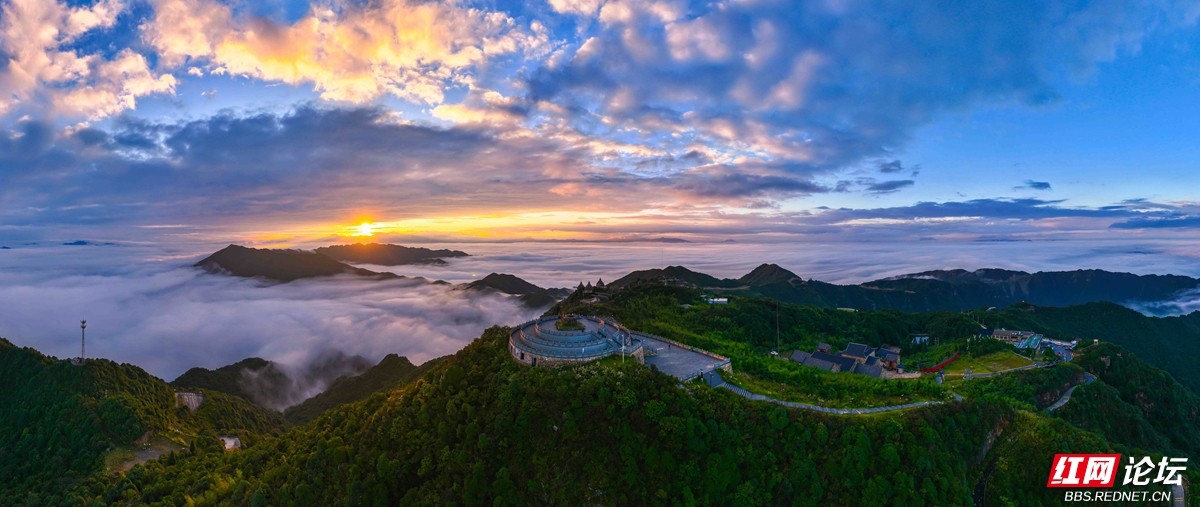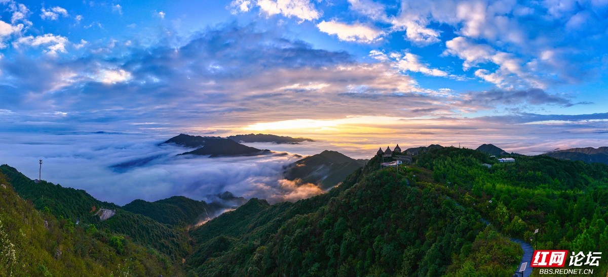 山风轻拂,云浪缓缓流淌,没有海的喧嚣,却有海的浩瀚。阳光渐盛时,云海边缘泛起鎏金光泽,与山间初染秋意的林木相映,构成资兴古八景“回龙望日”最动人的注脚。这一刻,山静云流,霞暖天光,秋日的第一幅日出云海画卷,在回龙山巅静静铺展。