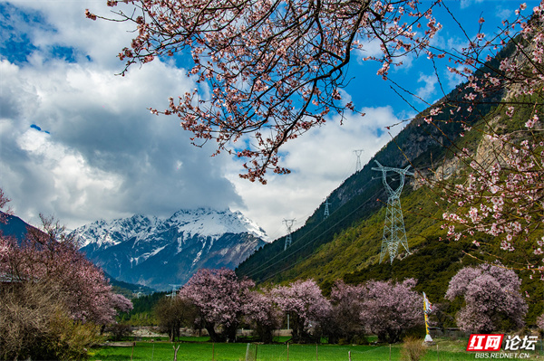 波密县扎木镇桃花绽放,美不胜收。