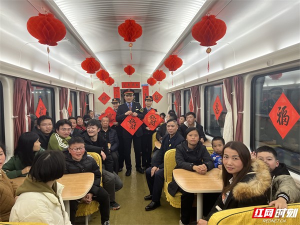 2025年1月23日,在松桃开往深圳东的K9262/59次列车上,长沙客运段怀化南线车队以“灵蛇献福,蛇启新程”为主题,在列车上组织开展小年送“福蛇”活动。