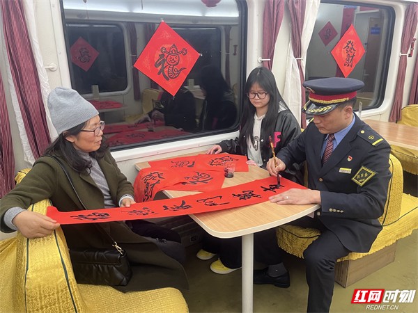 长沙客运段怀化南线车队坚持在中国传统节日用文化服务旅客,给旅客提供精神上的享受,在列车上一起书写“生肖福”送旅客,“文化进车厢”活动,也成为K9262/59次列车上一道靓丽的文化风景。