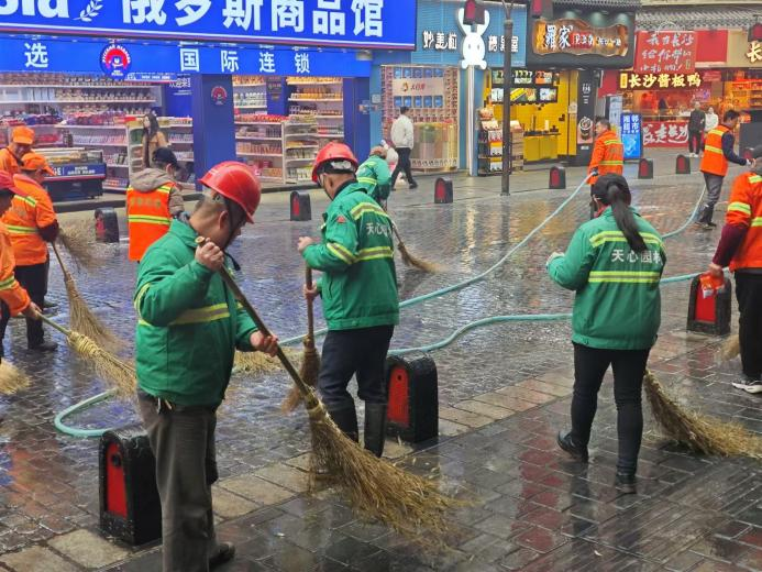 雨花区精心组织节前市容环境品质大提升活动,以区环卫中心为核心力量,广泛动员干部职工、门店业主及居民志愿者等,全域开展大清洗、大清理、大清扫、大清运行动。本次活动日均出动作业人员、居民群众及志愿者等共计7000余人,调用洒水车、养护车、垃圾车等各类工具车约500台次。活动期间,累计清理绿地脏乱问题600余处、垃圾堆物80余处、环卫设施“牛皮癣”800余处、油污问题500余处、道路泥沙污染400余处,并清运生活垃圾3400余吨。