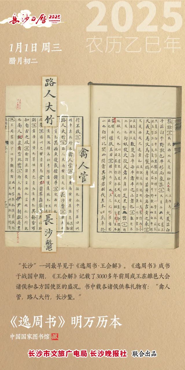 为更好地讲好长沙故事、传播长沙声音、擦亮长沙形象,长沙市文旅广电局联合长沙晚报掌上长沙推出全国历史文化名城首部集文博、文旅、文创于一体的城市日历——“长沙日历2025”,以日历定格永恒,以日历勾连古今,从日历走向无垠。以文释图、以图证文,共品千载长沙、共赴千面长沙。