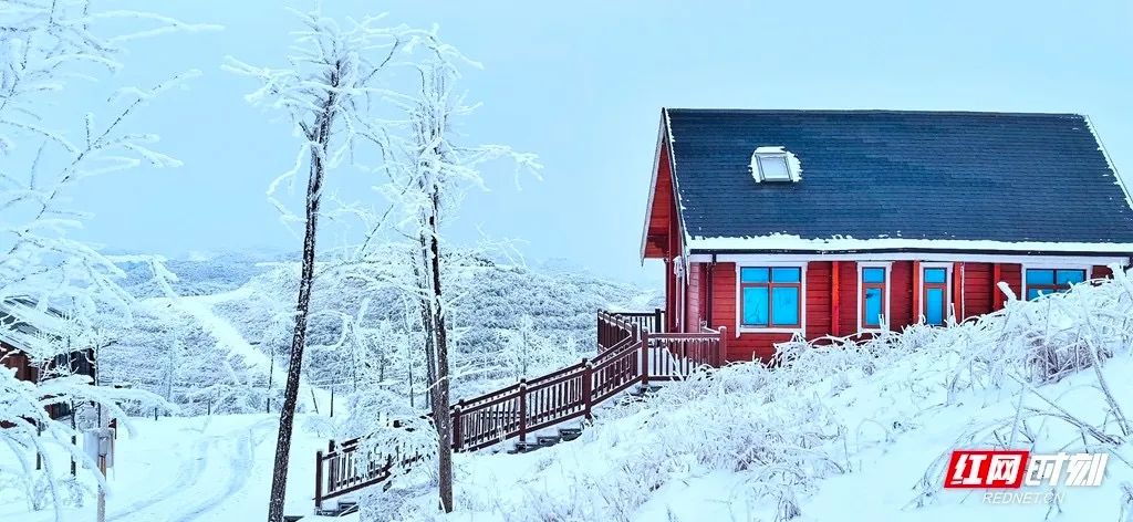 1月7日,湘西龙山八面山迎来2025年的第一场雪。雪中的民宿宛如一座座童话小屋,在银装素裹的世界,显得格外温暖治愈。