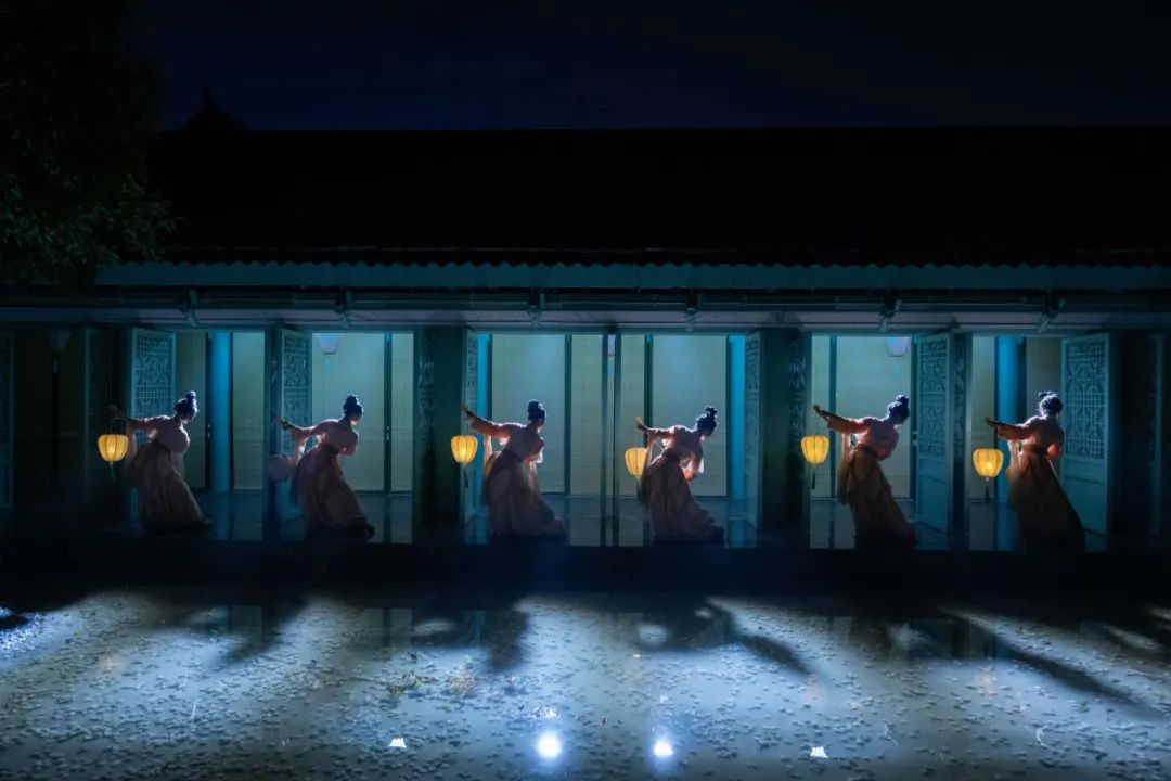 演出以潇湘八景之江天暮雪画卷中的历史脉络作为叙事轴,通过极致的画境和语境,构建一个关于江天暮雪的诗想场域。突破传统镜框式舞台,创新采用“景随戏动”的行浸观演模式。以声、光、水、雾、电为画笔,通过《序·山墙投影》《前庭探秘》《书院思辨》《橘洲夜宴》《乐坊笙歌》五个戏剧微剧场铺展叙事,从一器一物、一阁一楼、一江一雪出发,打造出特有的湖湘文化美学印记。