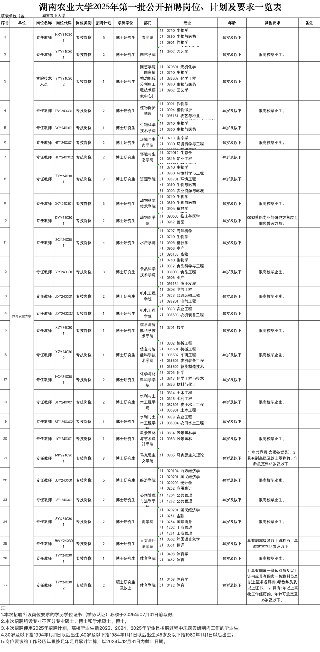 招聘信息通过湖南省人力资源和社会保障厅、湖南农业大学官网、湖南农业大学人才招聘网面向社会公开发布。