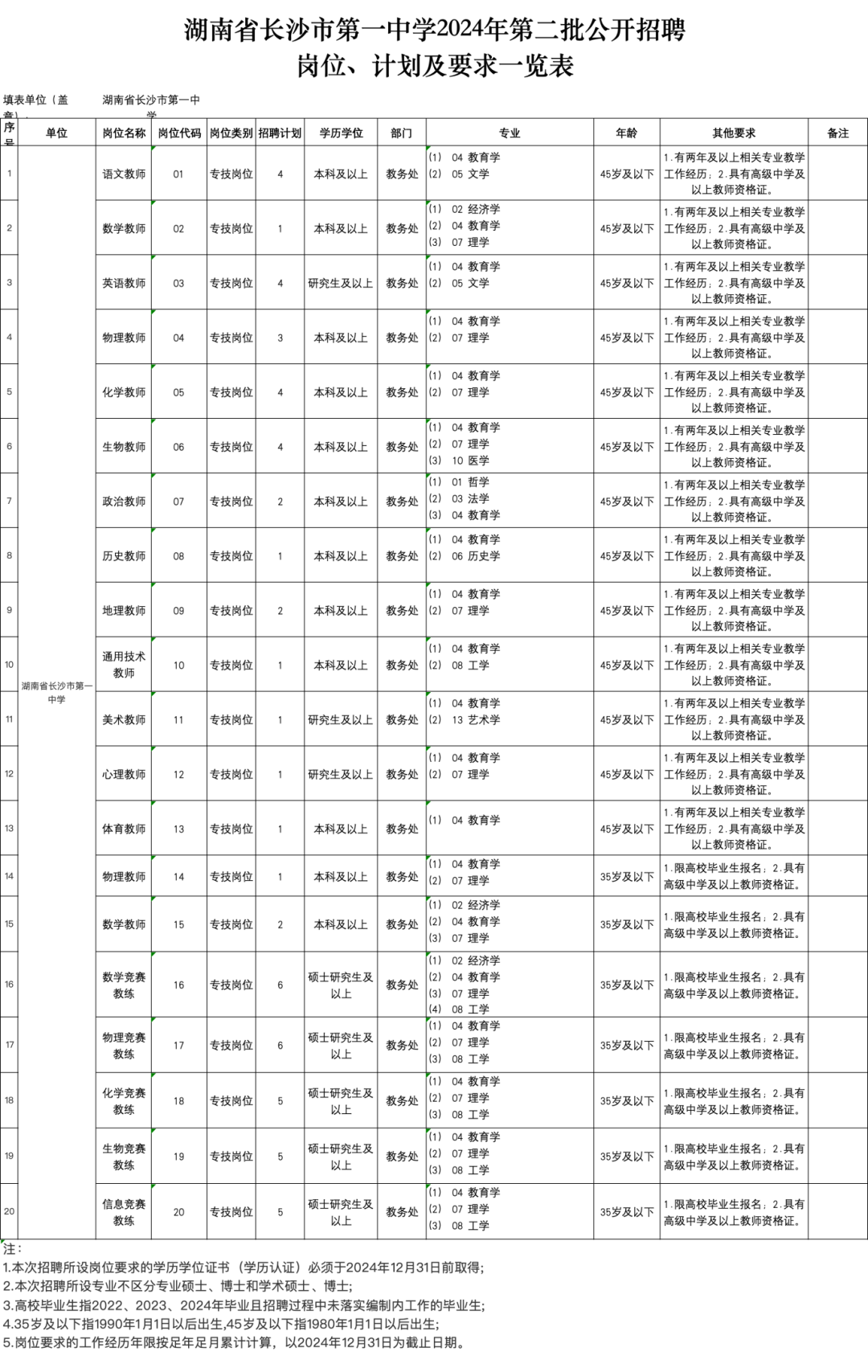 招聘信息通过湖南省人力资源和社会保障厅、湖南省长沙市第一中学网站面向社会公开发布。