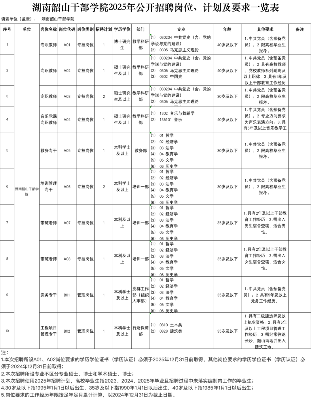 (1)A01、A02岗位:为高层次人才岗位,报名时间为2025年1月10日00:00至2025年12月31日24:00,随到随招,招满即止;