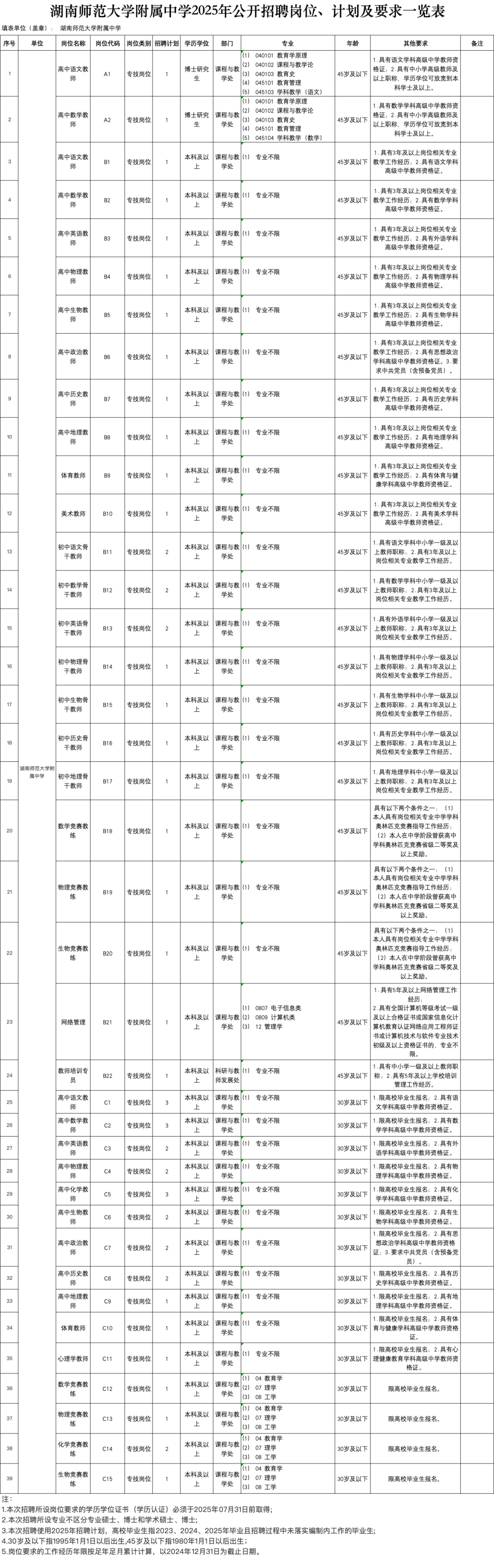 招聘信息通过湖南省人力资源和社会保障厅、湖南师范大学附属中学网站面向社会公开发布。