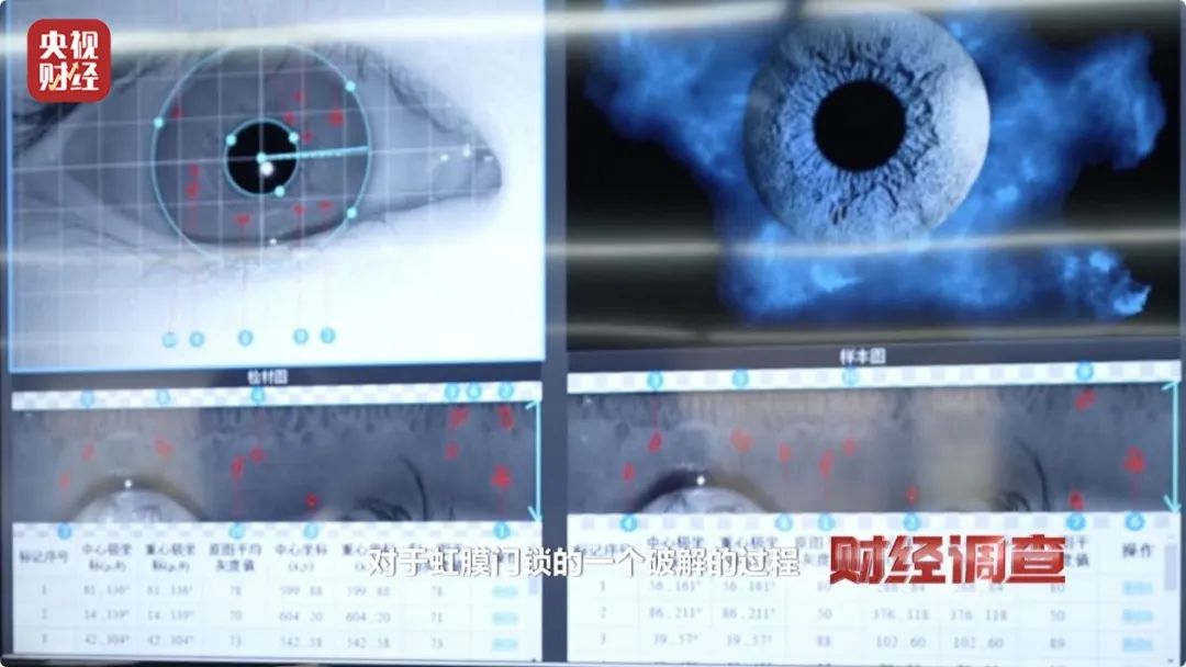 人的眼睛外观是由巩膜、虹膜和瞳孔三部分构成,虹膜是位于白色巩膜和黑色瞳孔之间的环形区域,约占眼睛外观总面积的65%。虹膜包含了丰富的生物学特征信息,而且在幼年固定下来后维持终身不变。这也是虹膜能够用于生物识别的重要原因。和指纹、基因、声纹、步态、人脸一样,虹膜是个体独特的生物信息之一,可以用来识别人的身份且特征具有唯一性,属于《中华人民共和国个人信息保护法》第二十八条所规定的敏感个人信息。中国科学院副研究员、生物特征识别专家袁飞继续补充介绍道,虹膜识别和指纹识别、人脸识别相比,精准度要大得多。一般来说指纹识别是千分之一的误识率,人脸识别可能做到万分之一,虹膜识别的精准度至少可以做到百万分之一。中国科学院自动化研究所研究员孙哲南认为,商家所说的“只有三维立体的虹膜特征图片泄露,才会造成安全隐患”的这种说法并不成立。在多年拦截黑客攻击过程中,专家发现黑客正是利用了平面虹膜照片,通过一些技术手段将其还原到眼球模型上,从而完成破解。随后专家也在记者的见证下,完成了利用虹膜写真通过虹膜识别终端的试验过程,这些平面照片上的纹理细节特征完全可以实现对于虹膜门锁的破解。律师则提醒消费者,不法分子获得了虹膜信息,再叠加其他个人信息,很有可能导致消费者产生财产损失。消费者应当尽量签订完善的隐私保护协议,要求商家及时删除照片,声明一旦出现风险由商家承担损失。北京大学人民医院眼科副主任医师李方烃表示,对眼睛拍摄的过程可能出现强光持续刺激眼球,造成视网膜光损伤;患有眼底病变等疾病,或在近期做过眼部手术的患者,可能导致症状加重。