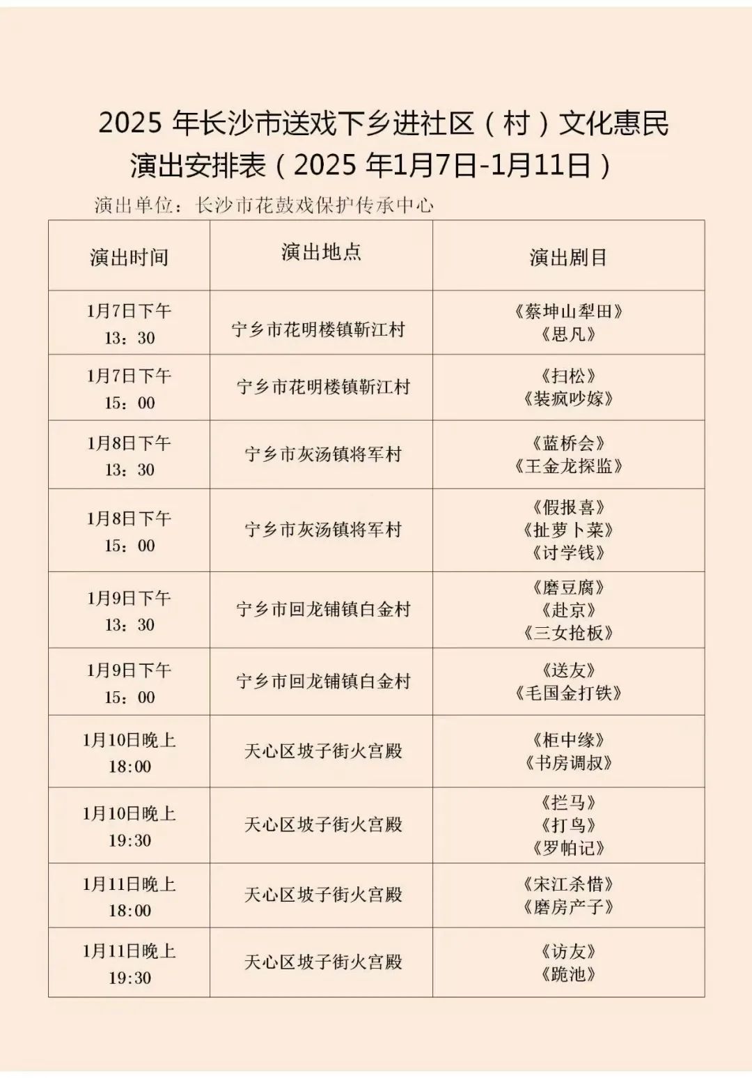 2025年长沙市送戏下乡进社区(村)文化惠民演出