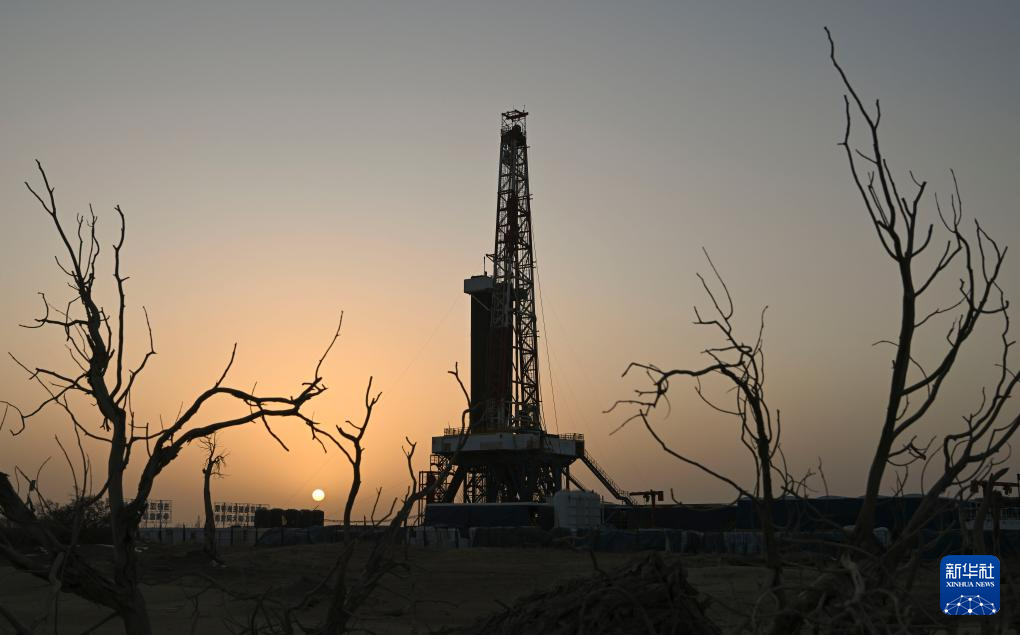 这是2月20日在新疆塔克拉玛干沙漠腹地拍摄的中国石油塔里木油田深地塔科1井(无人机照片)。图源:新华社(新华社记者 胡虎虎 摄)