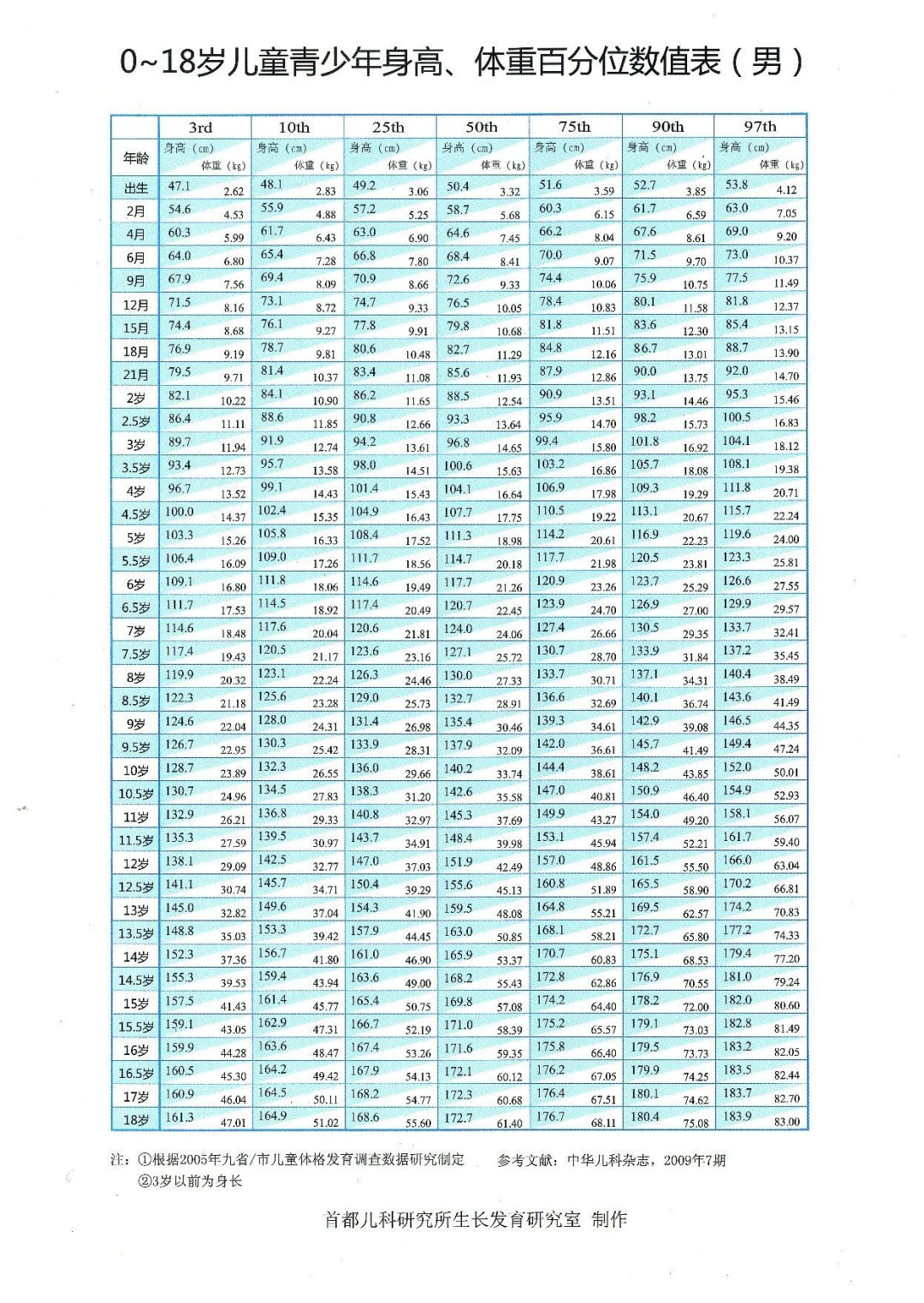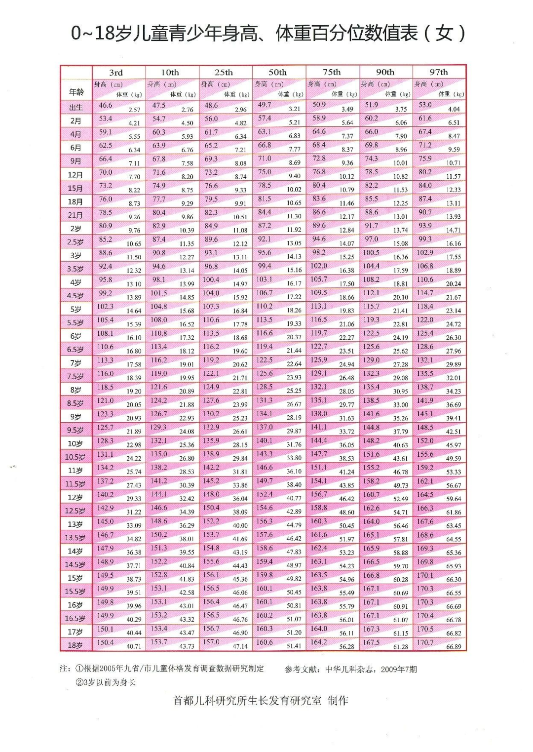 表中的50th为中位数,即平均身高;10th以下为偏矮。3rd以下为矮小,97th以上为超高。