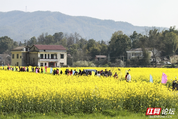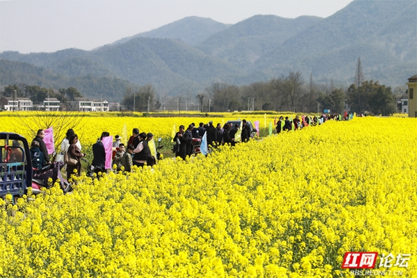 步入湖莲坪万亩油菜花基地,放眼望去,只见游客如织。花海中,田垄间,到处都是赏花的游客,人们沉浸在这浓浓的春意之中,一片欢乐的景象。