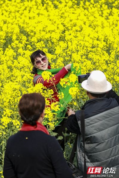 网友们在油菜花中留下靓影。(摄影:天外来客2)