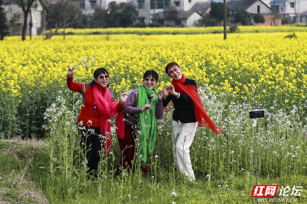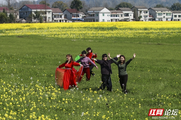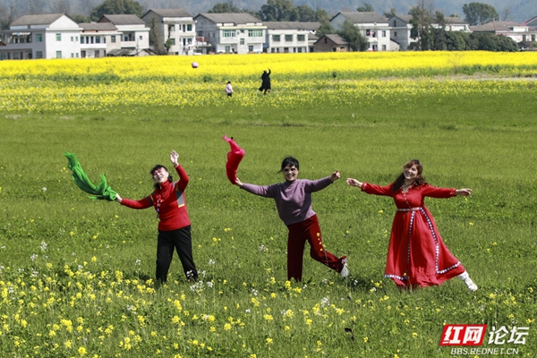 红网论坛网友情不自禁地跑入花海里跳起了舞蹈。(摄影:天外来客2)