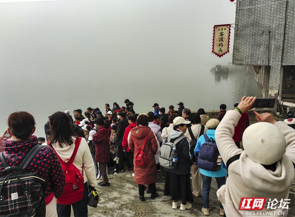 红网论坛湖湘文化版网友在码头上等待上船。(摄影:卜大姐)