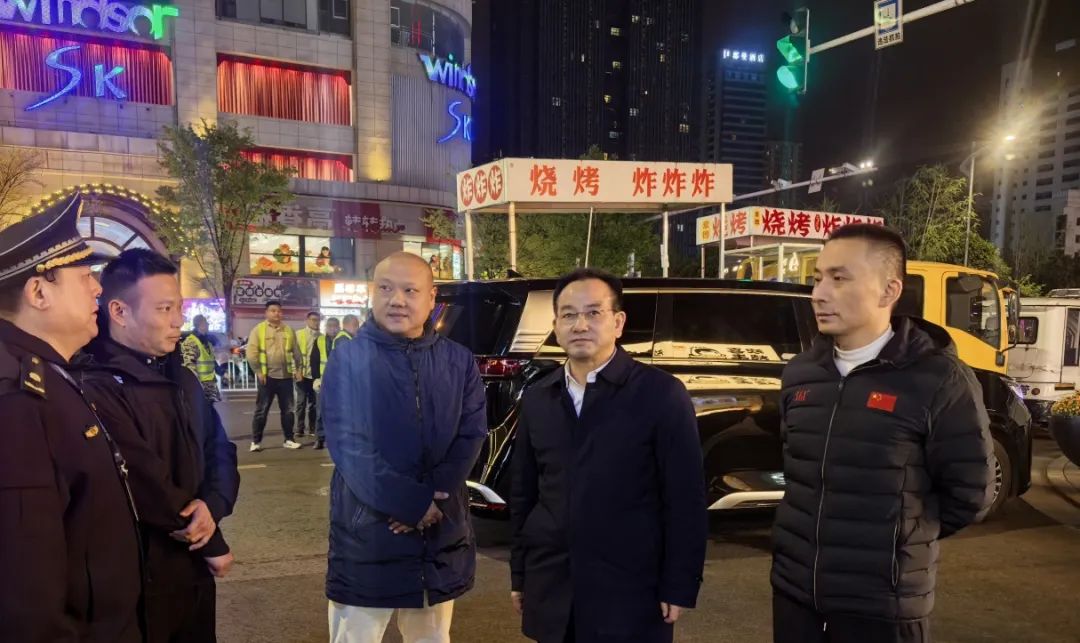 3月28日晚至29日凌晨,长沙市城管局党组书记、局长余宏卿督导五一商圈市容秩序整治“百日攻坚”工作,并现场指导通泰街街道专项整治行动。